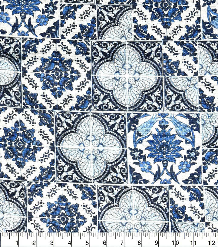 18 x 21 Blue Tiles Quilt Cotton Fabric Quarter 1pc by Keepsake Calico