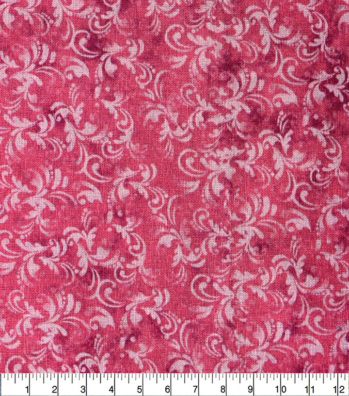 18 x 21 Pink Tonal Scroll Cotton Fabric Quarter 1pc by Keepsake Calico