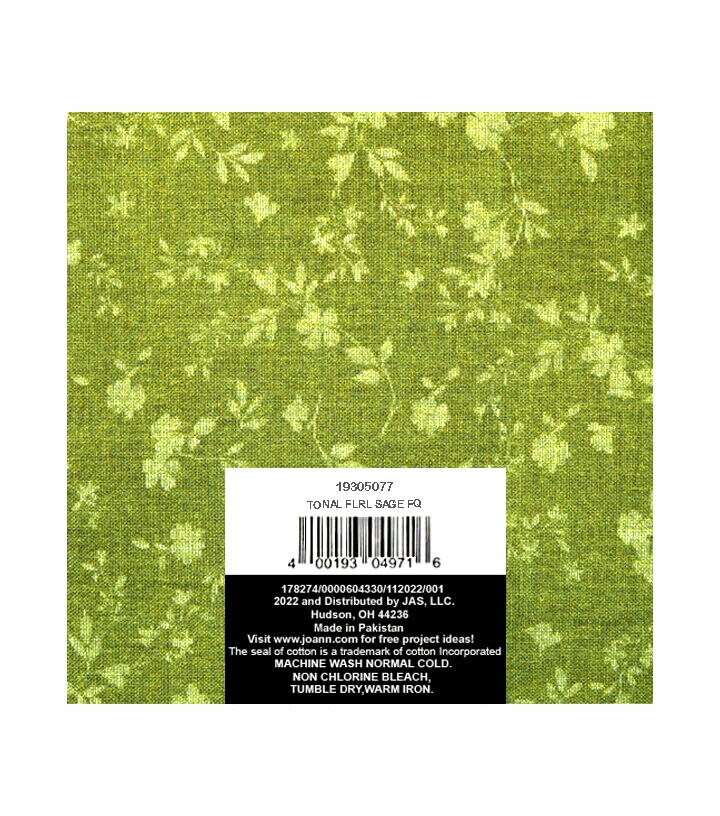 18 x 21 Sage Tonal Floral Cotton Fabric Quarter 1pc by Keepsake Calico