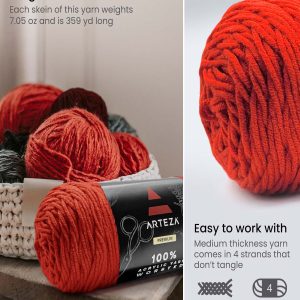 - 4 Premium Skeins – Each skein is 359 yd (328m) and 200g (7.05 oz), providing you with plenty of well-crafted yarn for blankets, large scarves, and more
