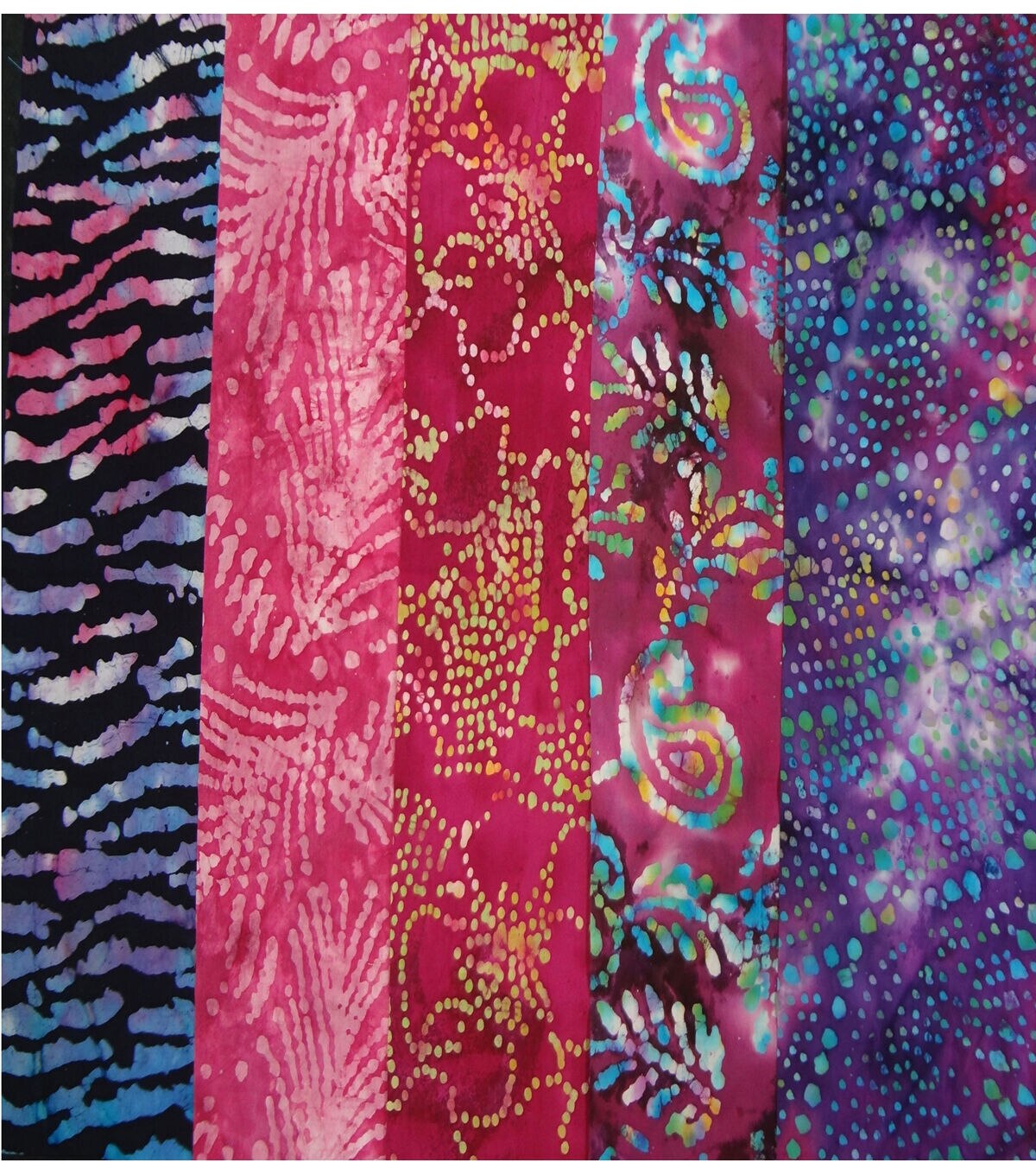 Perfect for quilters, the Fat Quarter Bundle Cotton Fabric-Assorted Batik Tie Dye is a great combination of coordinated designs and colors in pre-cut fabrics for a quick and easy DIY project. Each roll contains five different designs of 18 x 21-inch strips of high-quality 100% cotton fabric. It is available in a variety of colorful themes (each sold separately).