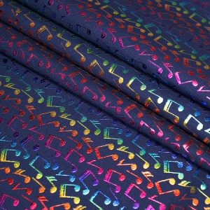 Get Creative with Bright Music Notes Novelty Foil Cotton Fabric