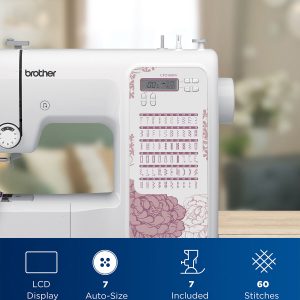 - 60 Unique Built-in Stitches: The Brother CP2160M sewing machine includes 60 built-in stitches, including utility, decorative, heirloom stitch functions, and seven auto-size buttonholes.
