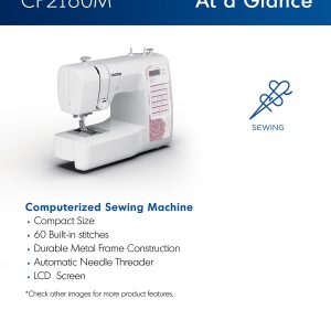 - At Your Side Support: The CP2160M sewing machine comes with Brother At Your Side support, offering free technical support via online, live chat, or phone for the life of your machine.