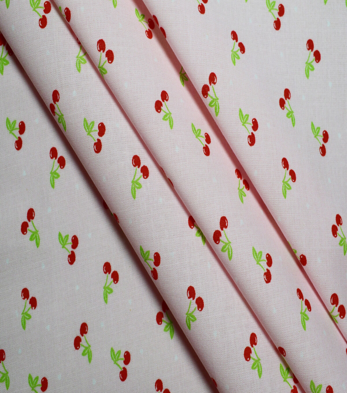 Cherries on Light Pink Quilt Cotton Fabric by Quilter s Showcase