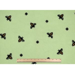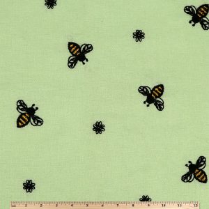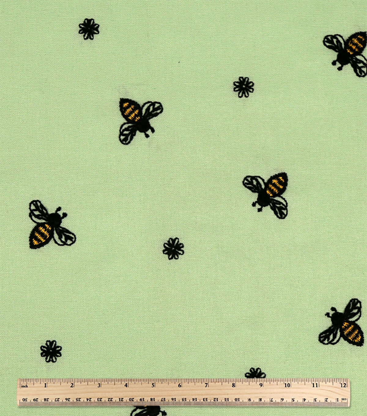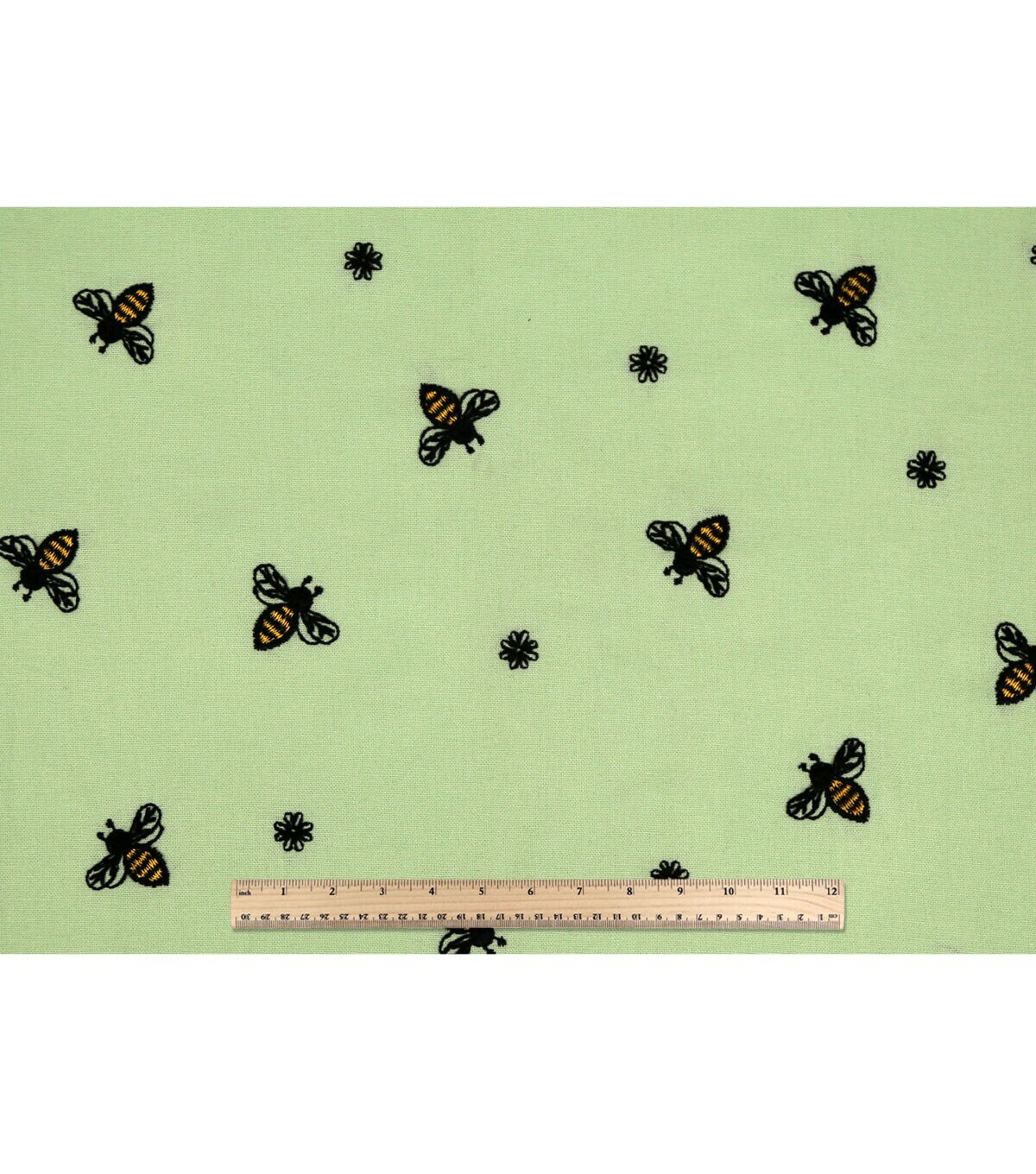 Embroidered Bees on Green Quilt Cotton Fabric by Keepsake Calico