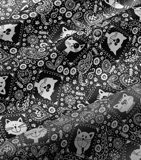 Get Playful with Fabric Traditions Bandana Cats on Black Novelty Cotton Fabric