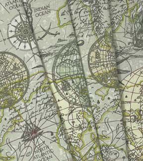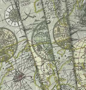 Explore the World with Fabric Traditions Green Navigational Map Novelty Cotton Fabric