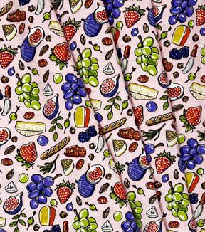 Enjoy a Picnic with Fabric Traditions Picnic Time on Pink Novelty Cotton Fabric