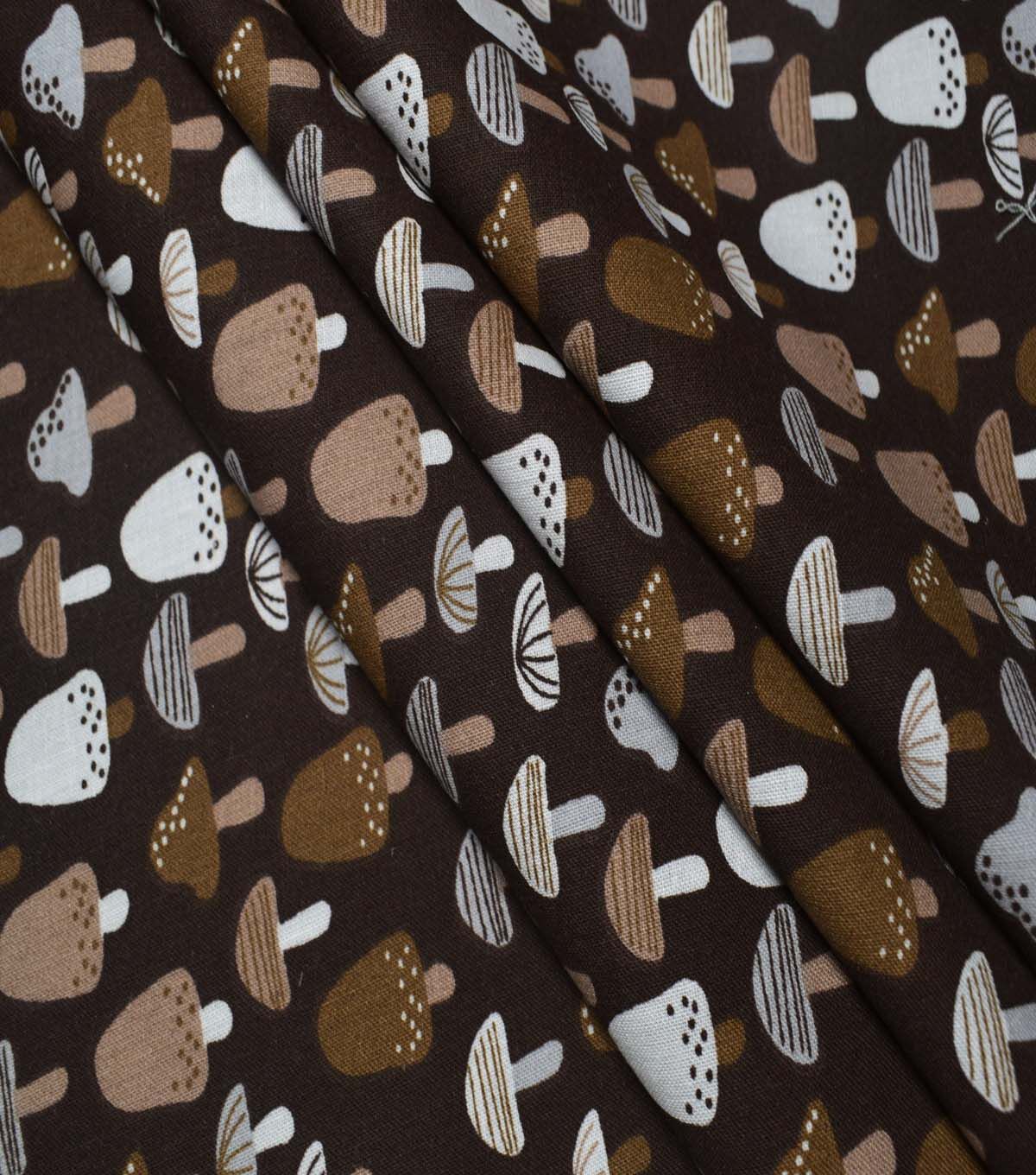 Experience the Beauty of Nature with In the Wild Mushrooms on Brown Cotton Fabric by Quilter’s Showcase