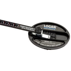 This exclusive three-step stepping mechanism ensures a clean, smooth bevel on any mat. The Logan 201 is designed to cut beveled ovals ranging from 3.25′ x 4.75′ to 20′ x 23′ in size. It will also cut beveled circles from 4.25′ to 20′ in diameter. The stepping mechanism allows the blade to gradually and precisely enter the mat in three stages and produce professional quality bevels that are crisp and attractive. The radial plate and blade depth are both adjustable.