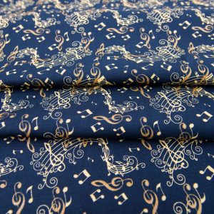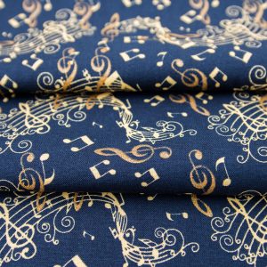 Whether you’re a musician or simply appreciate the art of music, this fabric is a must-have addition to your collection. The black and gold color scheme adds a touch of elegance and sophistication to any project, while the metallic accents provide a unique and eye-catching detail.
