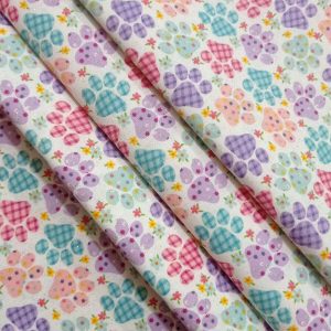 Make your Easter crafts stand out with our Purple & Red Paw Prints Easter Glitter Cotton Fabric. The vibrant colors and glitter accents will add a touch of sparkle to your projects. This fabric is made from 100% cotton, ensuring durability and comfort. The paw prints design is perfect for animal lovers and adds a playful touch to any project.