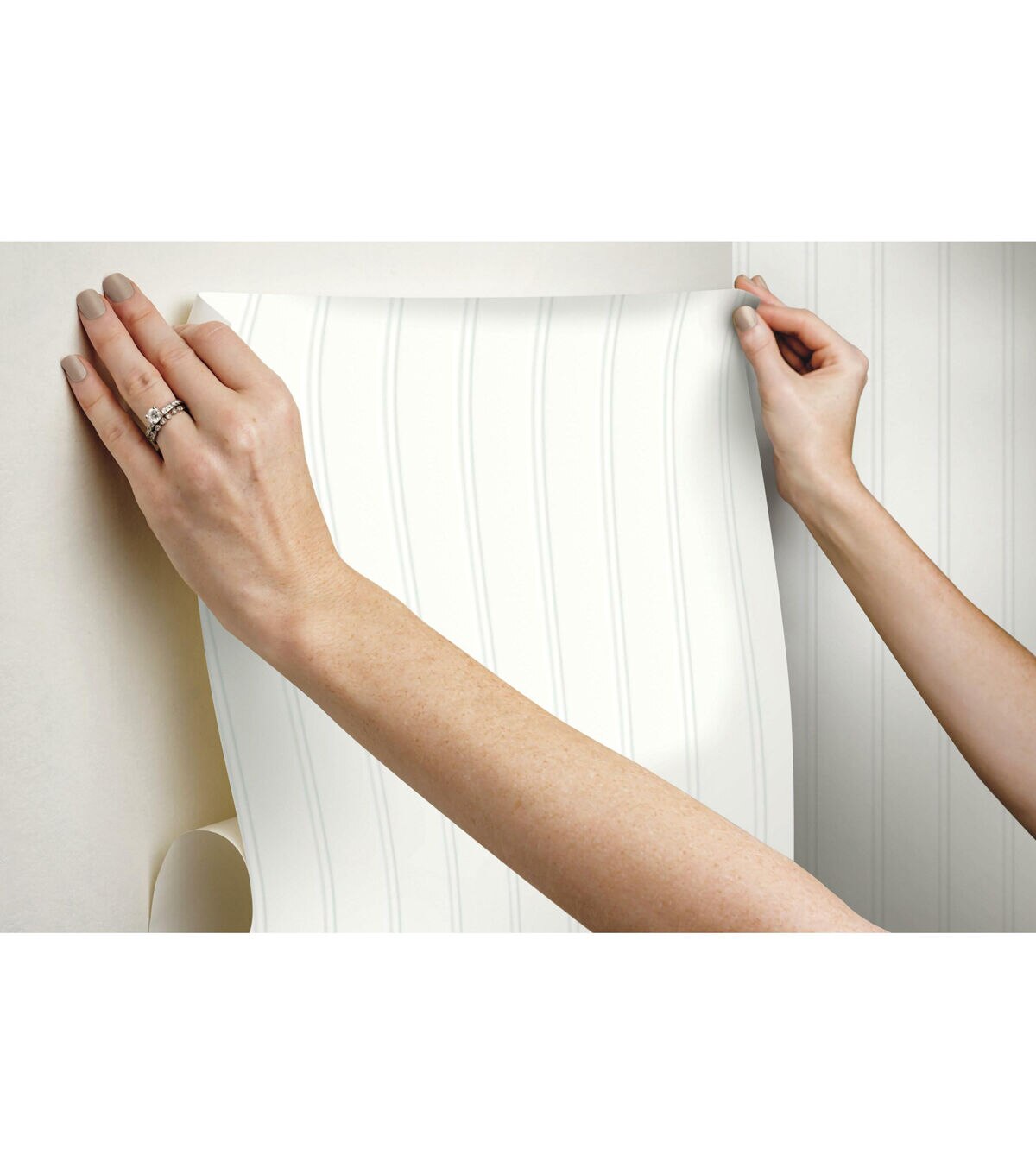 A timeless beadboard wall is now even easier than ever to install in your home thanks to this Beadboard peel and stick wallpaper from RoomMates. Fresh, clean and never out of style, beadboard remains a classic because it can be used in so many different ways to add interest to the walls or other surfaces. This narrow wood design looks very dimensional and so realistic that you will have to look twice to realize it is not the real thing. Warm white is a timeless color option that looks great with white kitchen cupboards, white molding and just about any style of décor from farm fresh to ocean-front. Peel and stick wallpapers are an easy and affordable way to decorate; simply peel off the paper backing and smooth onto the wall. When it’s time to redecorate, remove in full strips with no remaining sticky residue or damage to walls. 18 inches wide x 18.86 feet 20.5 Repeat. Straight Match. 28.18 square feet