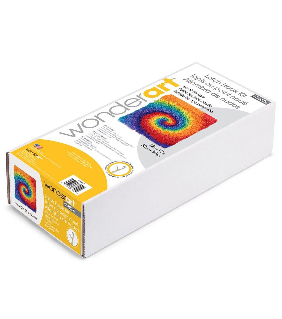 CARON-Wonderart Latch Hook Kit: Pinwheel. These small kits are ideal for beginners or quick weekend projects. When finished, they can be made into table top decorations or to decorate a wall! This package includes one 12×12 inch pinwheel canvas (50% polyester/50% cotton), pre-cut rug yarn (100% acrylic), illustrated instructions on how to latch a hook and one easy-to- follow chart. Latch hook tool and binding not included. Hand wash or dry clean. Made in USA.