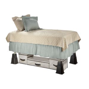 Simplify’s bed risers are designed to lift your bed three different heights to create under the bed storage space. Lift your bed 3 inches, 5 inches or combine the two sizes and lift it 8 inches. Keep your bed propped up with these sturdy and conveniently designed risers. Simply attach to bottom of bed posts and you’ll instantly have more storage under your bed. Also helps with getting in and out of your bed.