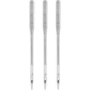 The Singer Universal Heavy Duty Sewing Machine Needles are just what you need for stitching on heavyweight fabrics such as denim, drapery fabrics, wool and corduroy. These needles are color-coded in a silver tone while the plastic case holder comes with markings for ease of recognition. This pack includes three heavy-duty sewing machine needles in size 110/18. They are compatible with Singer, Brother and Kenmore and other standard sewing machines.