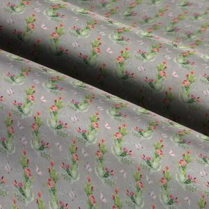 Susan Winget Cactus on Gray Premium Cotton Fabric