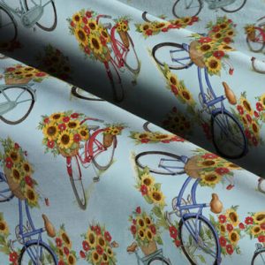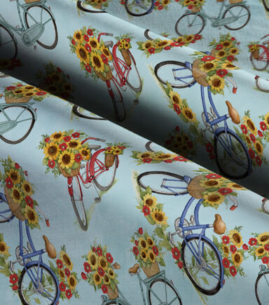 Susan Winget Red Truck Florals Tossed Bicycles Premium Cotton Fabric